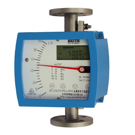 金屬管浮子流量計,是變面積式流量計的一種。在一根由下向上擴大的垂直錐管中,浮子可以在錐管內(nèi)自由地上升和下降,圓形橫截面的浮子的重力是由液體動力承受的,隨著流量的變化,浮子在流速和浮力作用下上下運動,在某一位置浮子所受的力與浮子重力達到平衡。此時浮子與孔板(或錐管)間的流通環(huán)隙面積保持一定環(huán)隙面積與浮子的上升高度成正比,即浮子在測量管中上升的位置代表流量的大小,變化浮子的位置由內(nèi)部通過磁耦合傳輸?shù)酵獠康闹甘酒鳎怪甘酒髡_地指示此時的流量值。這就使得指示器殼體不和測量管直接接觸,因此,即使安裝限位開關(guān)或變送器,儀表可用于高溫,高壓工作條件下。