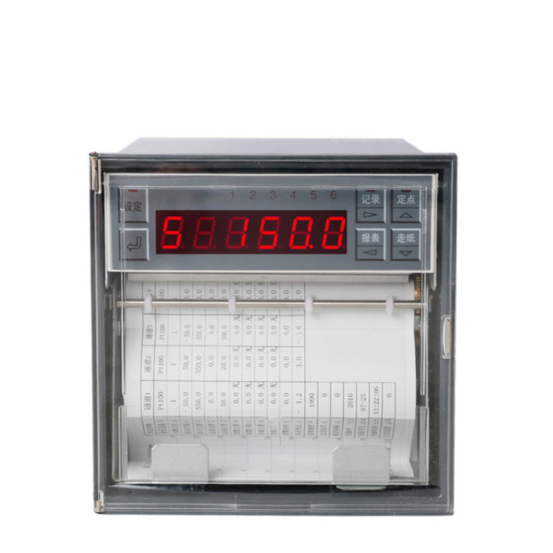 該儀表的每個通道均可直接選擇接收多種熱電偶、熱電阻、電壓和電流信號,并可對被測信號進行數字顯示及進行趨勢記錄和數字記錄,能在本身打印的100mm寬的紙格上同時記錄刻度值、時間及每一個信號的曲線,并將通道號印在各通道的軌跡旁。可通過鍵盤設定測量信號種類、小數點位置、顯示范圍、記錄邊界、報警值、回差、系統誤差的校正、記錄標尺、數據打印間隔、走紙速度、打印深度及時間等參數,并對所設參數加以保護。