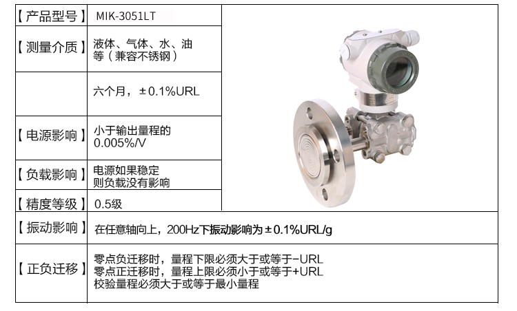 MIK-3051LT型單法蘭式壓力變送器是我公司引進國外先進技術和設備生產的新型變送器,關鍵原材料,元器件和零部件均源自進口,整機經過嚴格組裝和測試,該產品具有設計原理先進、品種規(guī)格齊全、安裝使用簡便等特點。